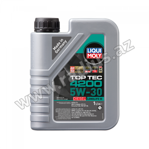 Top Tec 4200 Diesel 5W-30 - minik avtomobillərinin dizel mühərriklərində istifadə üçün HC-sintetik aşağıküllü (Mid SAPS) mühərrik yağıdır. Çox mərhələli katalizator və qurum filtri (DPF) olan müasir dizel mühərrikləri üçün tövsiyə olunur. EURO 4 və daha yuxarı ekoloji standartlara uyğundur.