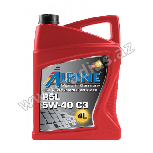 Alpine RSL 5W-40 C3 высокопроизводительное маловязкое синтетическое моторное масло для бензиновых и дизельных двигателей легковых автомобилей, с низким содержанием серы, золы и фосфора (низкий SAP). Базовые масла новейшей технологии синтеза и адаптированный к ним комплекс новейших высокопроизводительных присадок с пониженным содержанием сульфатной золы обеспечивают наилучшую защиту от износа и максимальную чистоту двигателя. Обеспечивает отличные пусковые качества и высокую надёжность смазывания холодного двигателя. Надёжный контроль экстремальных нагрузок и высоких температур. Alpine RSL 5W-40 C3 может применяться при любых рабочих условиях и благодаря снижению вредных выбросов способствует сохранению экологии.